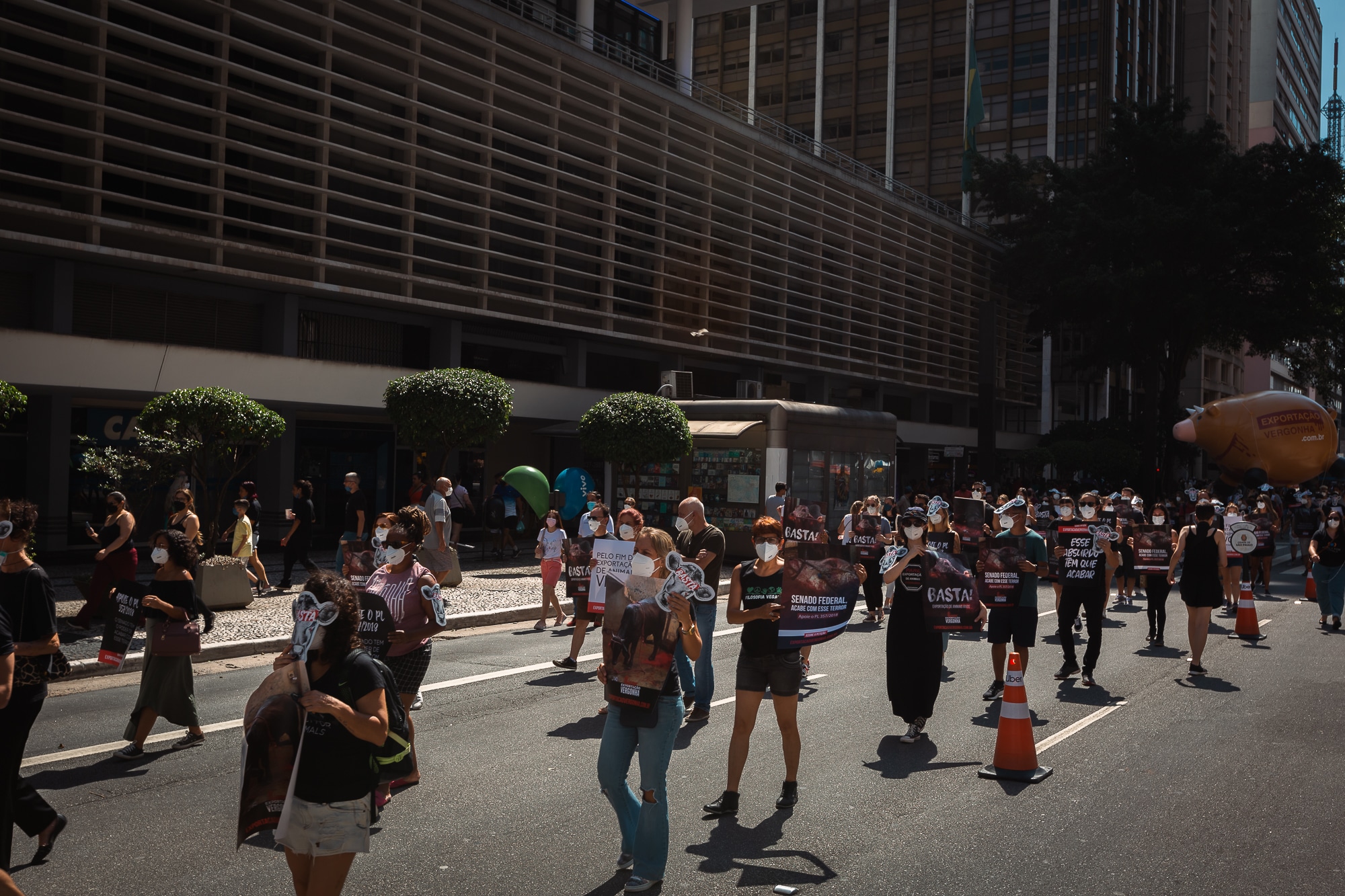 Manifestantes foram às ruas na tarde deste domingo (6/3), em São Paulo, para pedir o fim da exportação de animais vivos por via marítima no Brasil. Organizado pela Mercy For Animals, o ato público e pacífico mobilizou cerca de 100 pessoas na Avenida Paulista e seguiu os protocolos e regras de prevenção contra a Covid-19.