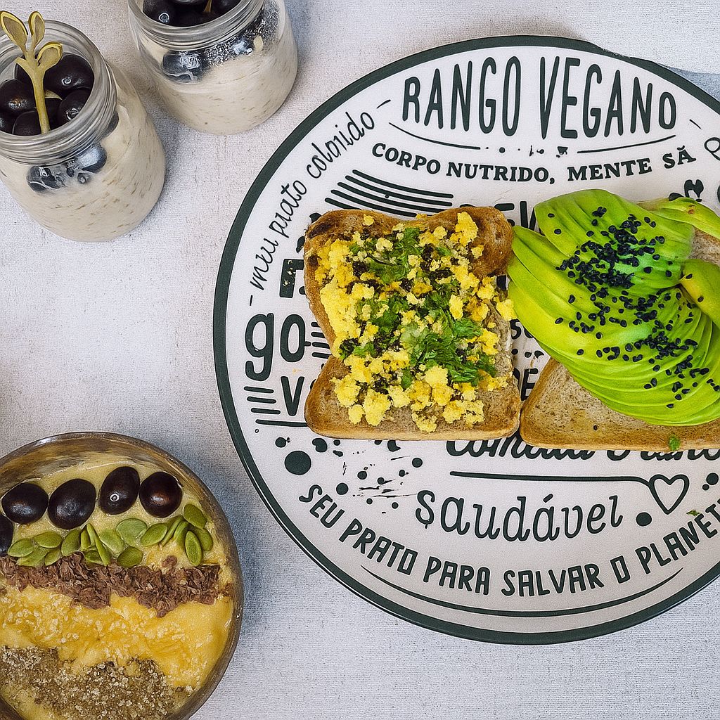 - Monte as torradas: uma com o tofu mexido e outra com o abacate em formato de flor. Finalize com gergelim e sal.