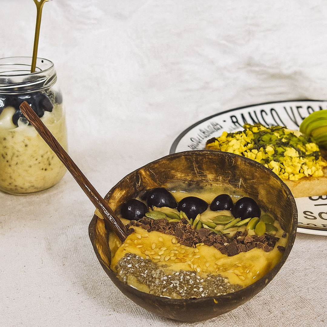 - Coberturas: frutas frescas, granola, coco ralado, sementes, etc.